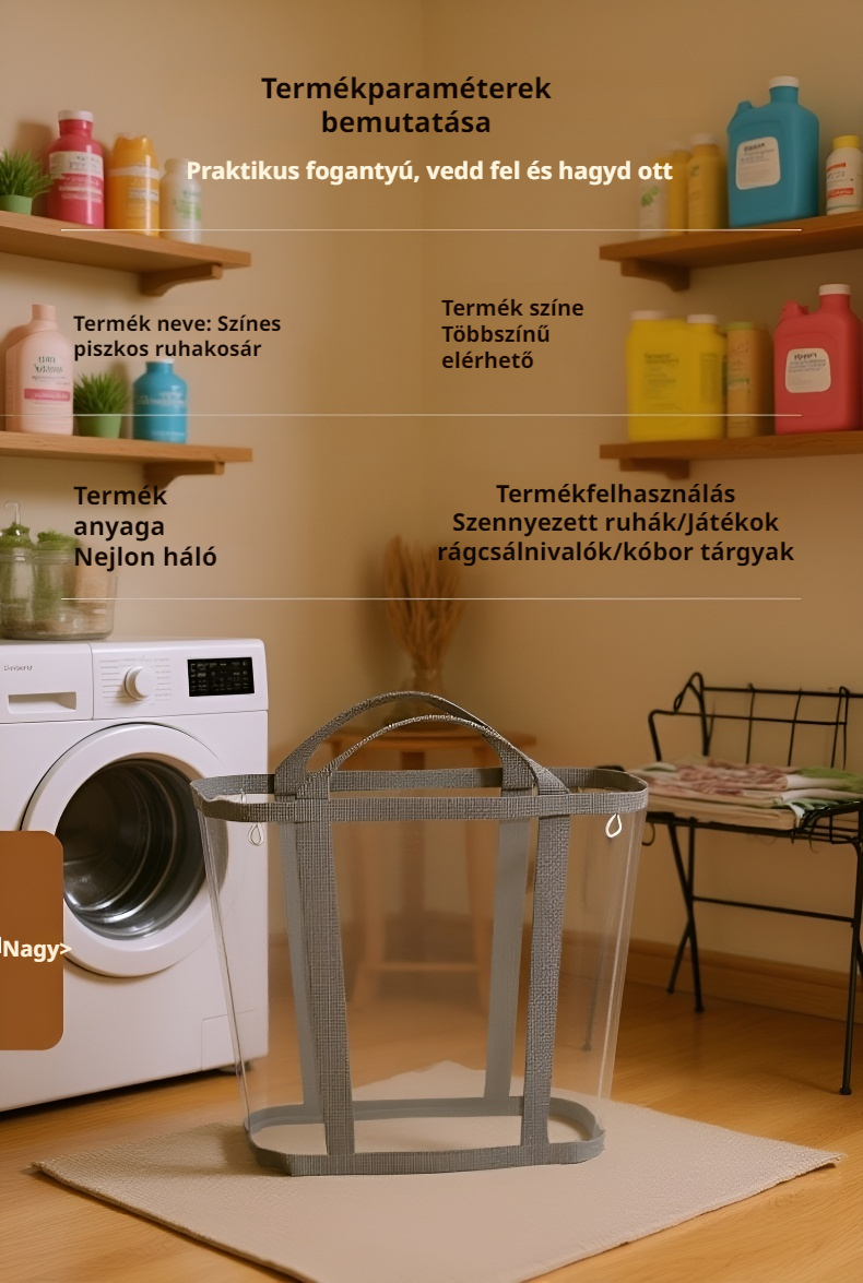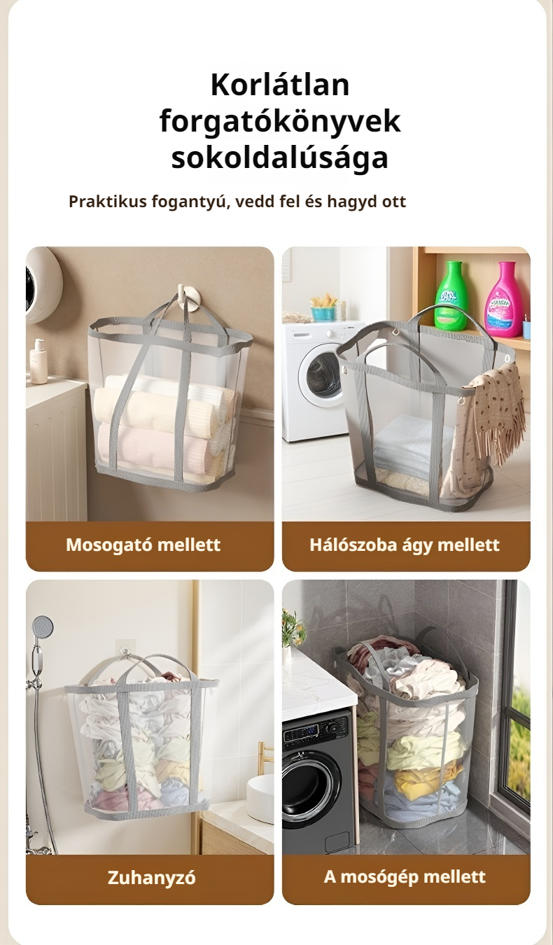 Nagy kapacitású, összecsukható szennyeskosár falra szerelhető fürdőszobai tároló